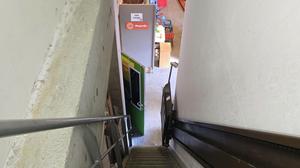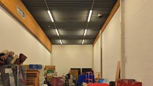 De verdieping is zowel toegankelijk voor- als achteraan het magazijn via een metalen trap (+ goederenlift 500kg) – houten overspanning