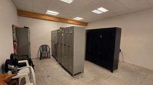 Eerste verdieping (595m²): vide (inkom) - opslagruimte – toiletten (man/vrouw apart) – kitchenette – technische ruimte – stookplaats - archief